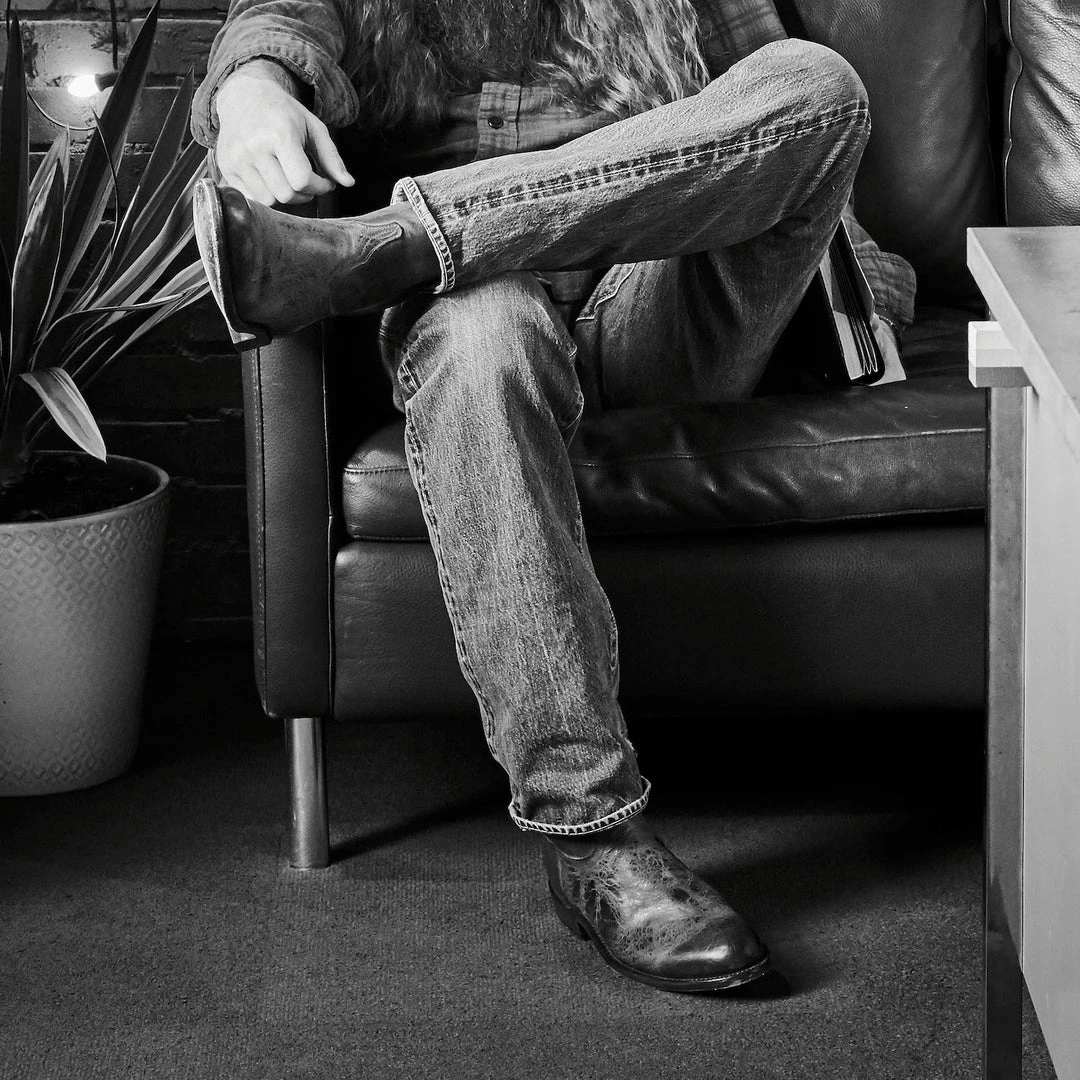 The Tanner is a Lucchese roper made of durable Mad Dog Goat perfect for the man looking for a shorter heel and shaft than those of a traditional cowboy boot.