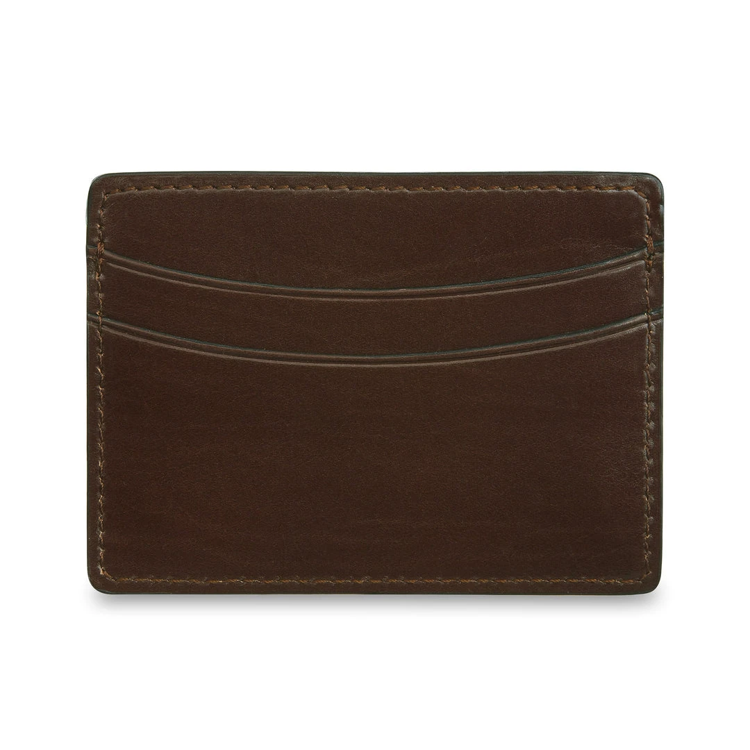 Crafted with genuine calfskin leather, this credit card case is the ideal wallet alternative for those who prefer to carry the basics. The slim, rectangular design allows for an easy and hassle-free fit in either your front, back or coat pocket. Features include four card slots and a single slip pocket to help keep all of your cards and currency organized. Additional Features: Four card slots Slip pocket Handmade in USA 4″ W x 3″ H x .25″ D
