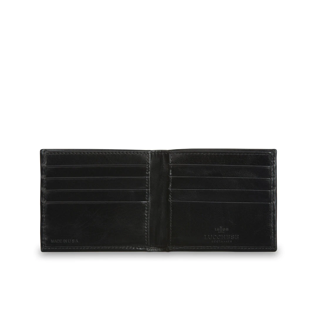 Our 8-card hipster wallet is handcrafted with luxurious calfskin leather. Its slim and smooth construction provides enhanced versatility, making it an effortless fit for either your front, back or coat pocket. The Lucchese logo is neatly stamped on the interior, allowing for a subtle and sleek exterior finish. Additional Features: Interior currency pouch Eight card slots Two interior slip pockets Handmade in USA 4.25″ W x 3.75″ H x .5″ D