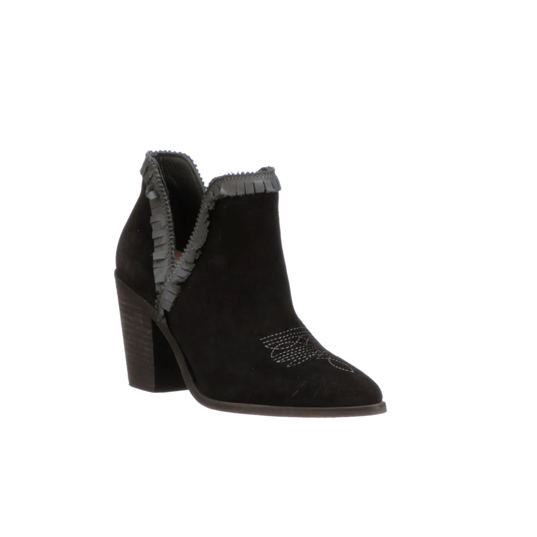 Alma Suede is a modern bootie with western flair.