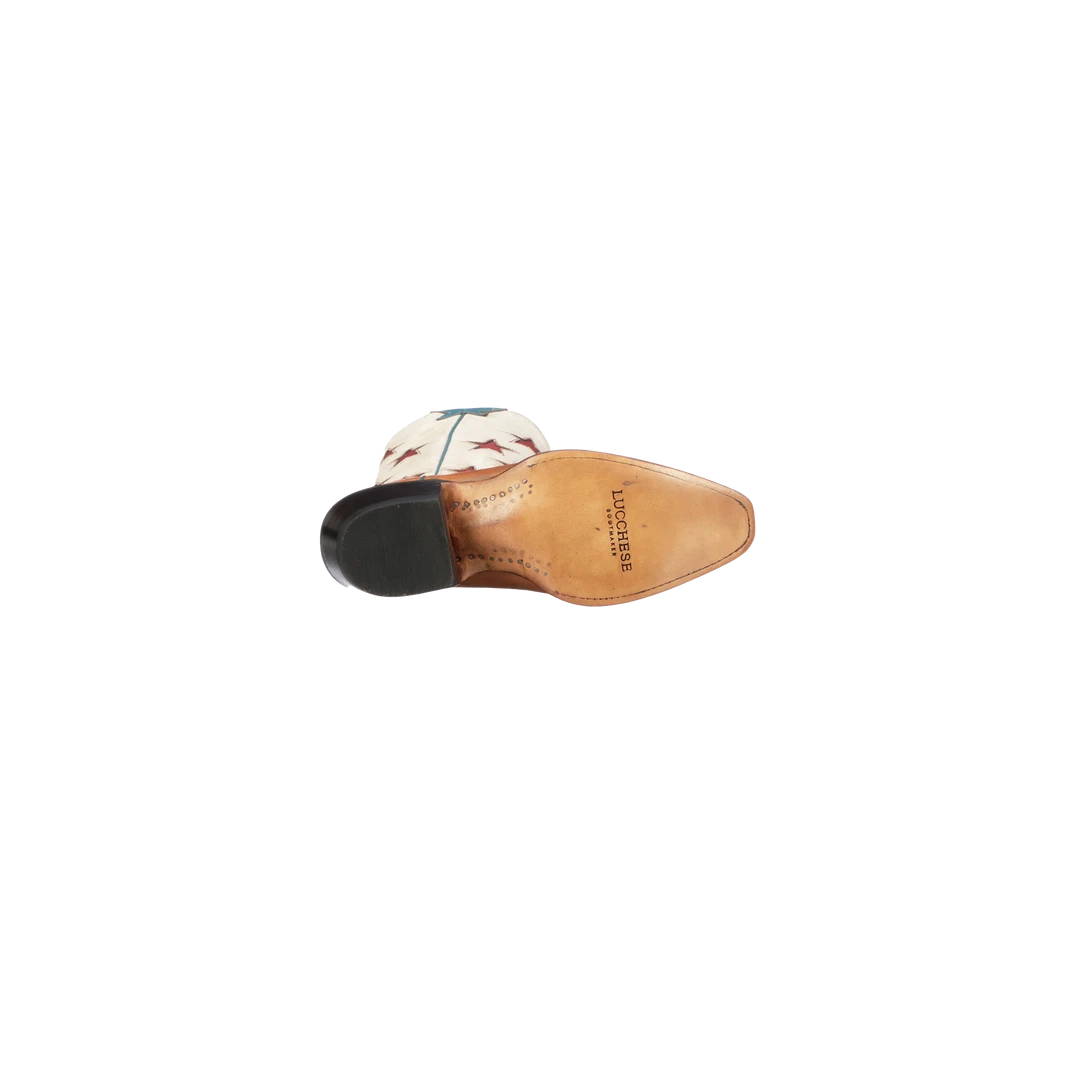 Estrella means “star” in Spanish, and this style features just that inlaid delicately on the quarters. The slightly shorter shaft and pointed toe make this boot the star of the show. Full single stitch welt construction. Leather sole. Handmade in Mexico.