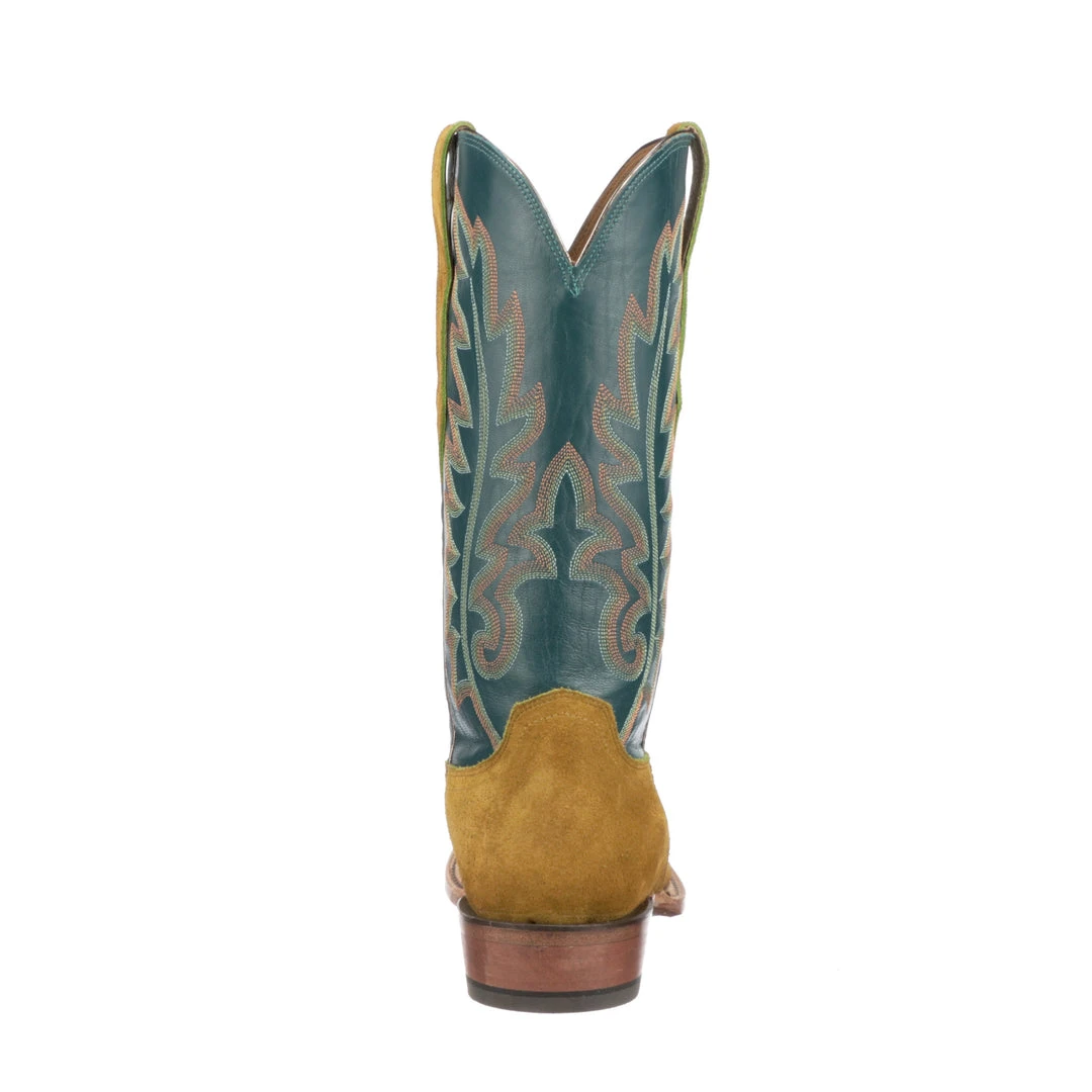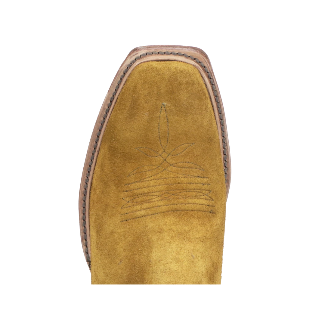 Silo is a modern horseman boot crafted from rich suede. It has a single natural storm welt detail and contrasting quarter panels. Handmade in Texas.