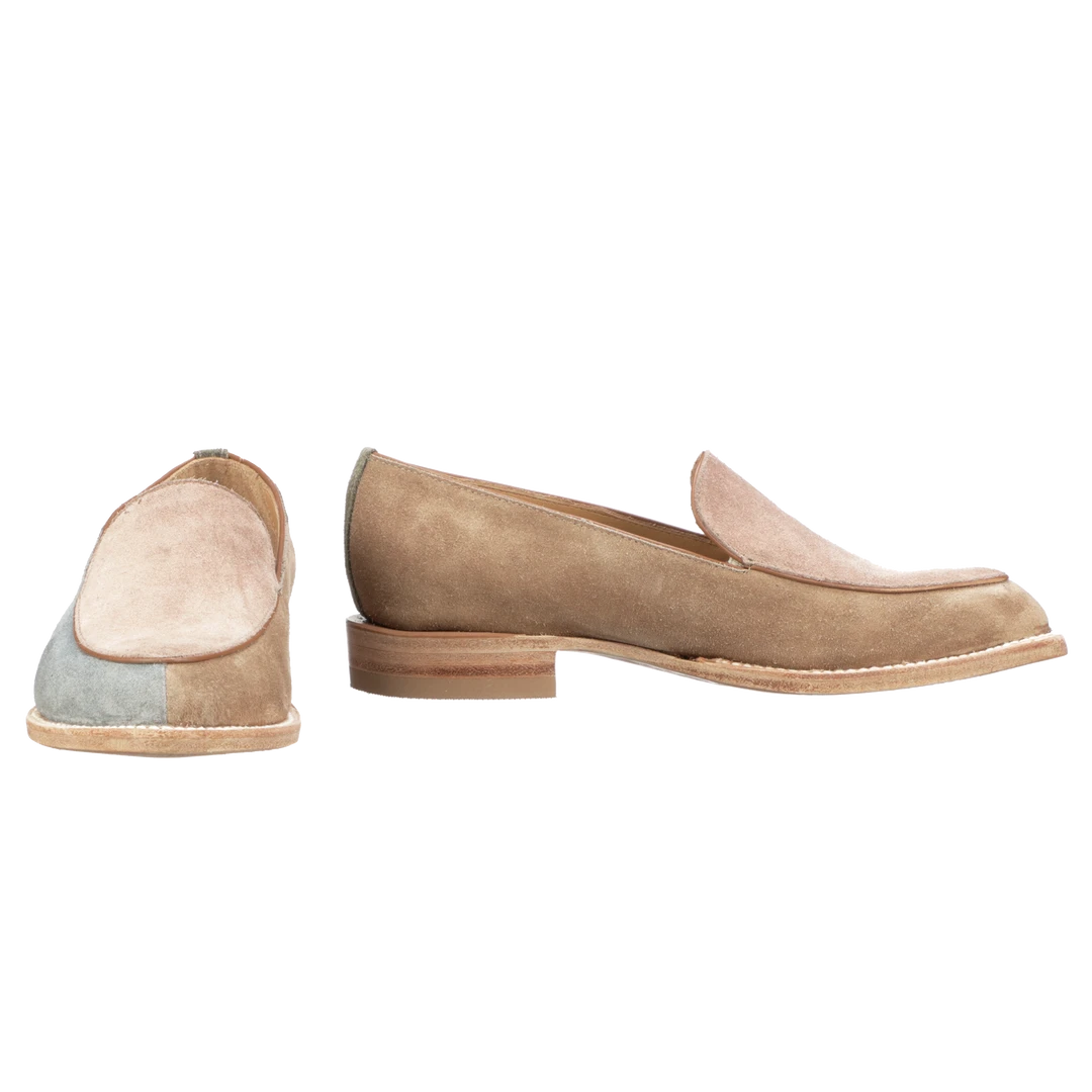 Crafted from blocks supple suede with colors of the Western painted desert, the Mimi loafer is an easy shoe to slip on no matter the season. Handmade in Texas.