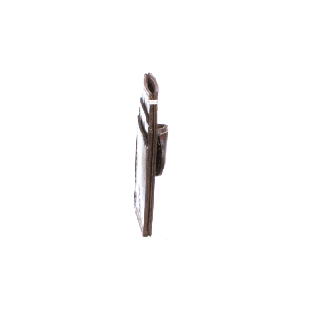 Crafted with Mad Dog Goat leather, this money clip card case is the ideal wallet alternative for those who prefer to carry the basics. Details: β’Mad Dog Goat β’Two card slots on front β’One card slot on back β’Clip β’Dimensions: 4.25″ W x 3″ H x .25″ D β’Handmade in USA